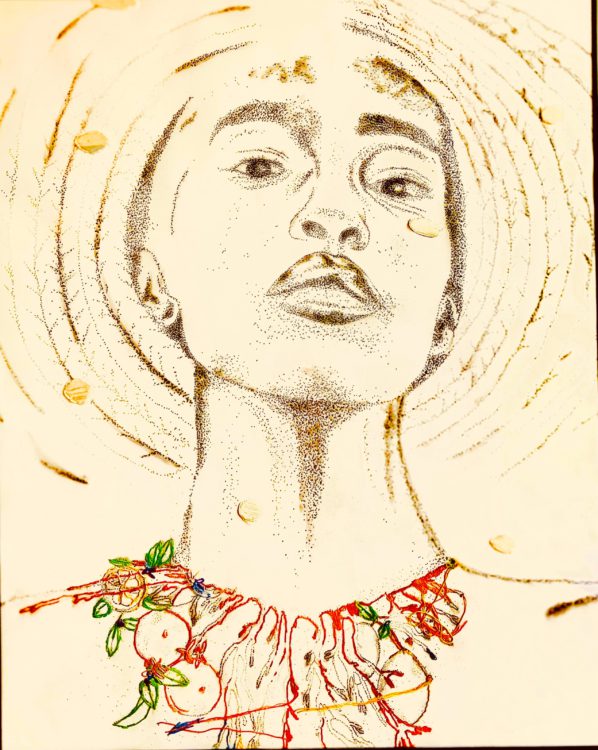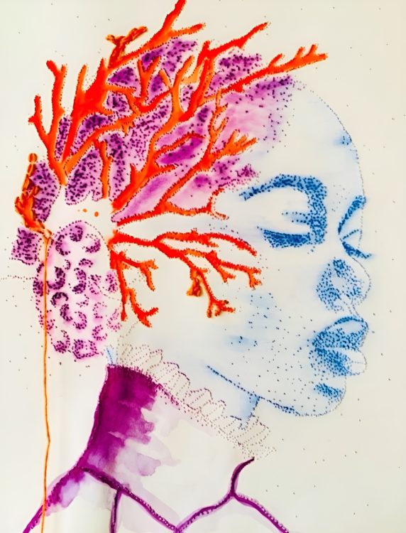Mijn werk nodigt uit om bewust te zijn waar je jouw aandacht aan schenkt. Door portretten, natuurelementen en natuurlijke pigmenten, geperforeerd en geborduurd, ervaart de kijker verbinding met de natuur en onze onderlinge verwevenheid.