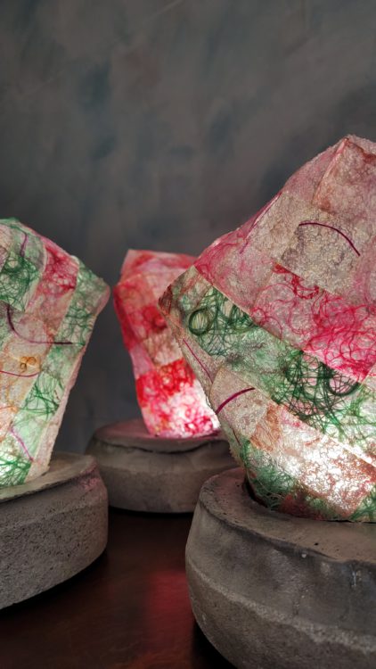 26 x 38 x 29 cm / Bioplastic-Waste-Yarn materiaal, beton, lamp / €4000